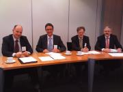 historie van Fortis ASR en zijn rechtsvoorgangers aan voormalig Fortis-topman Hans Bartelds en voormalig Stad Rotterdam-topman Luuk van Leeuwen (rechts)